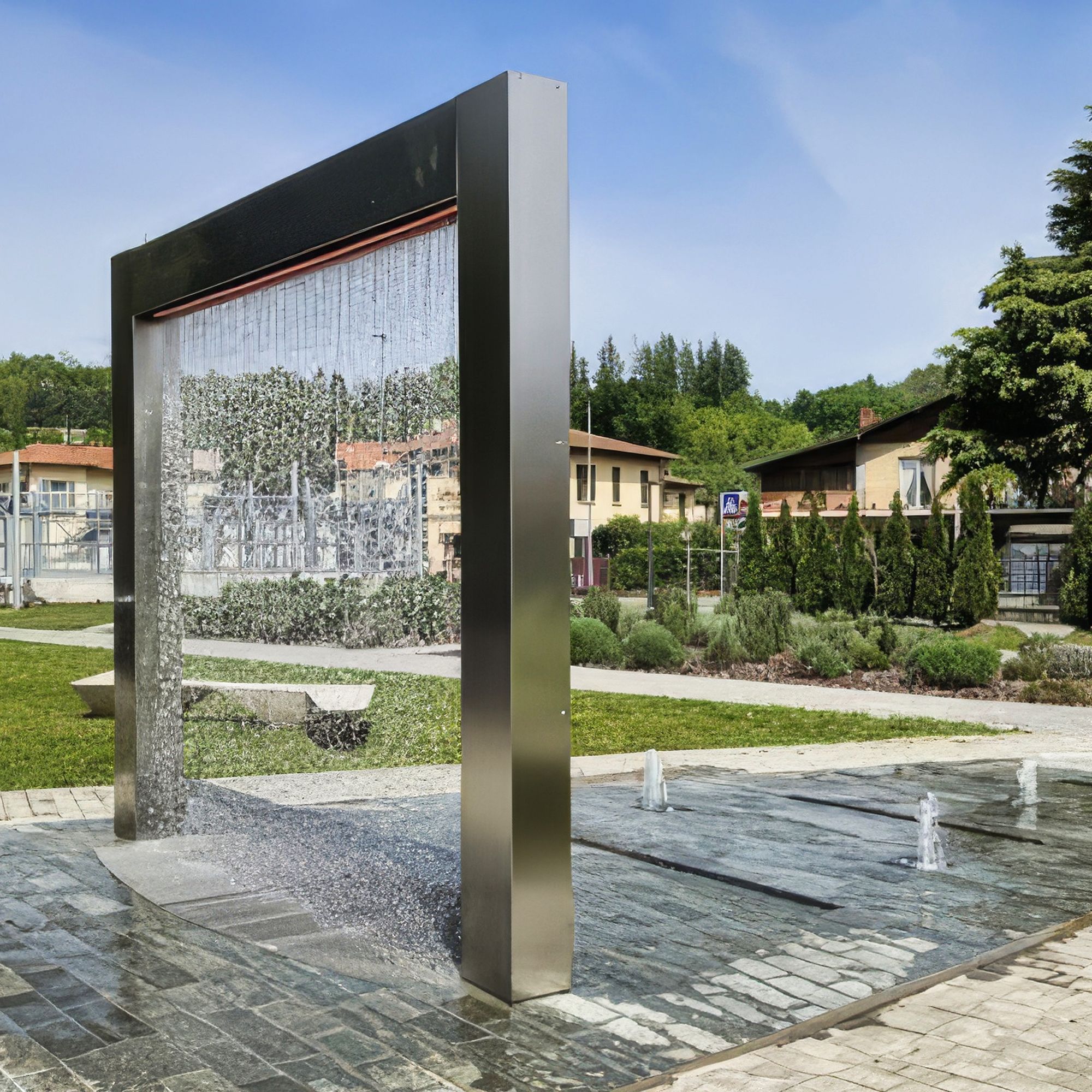 Vertical water fountains as curtains and walls of water are a wonderful fusion of art and movement. These elegant installations transform spaces into a unique sensory experience. Curtain fountains consist of thin strips of water that fall sinuously, creating a fascinating and relaxing visual effect.