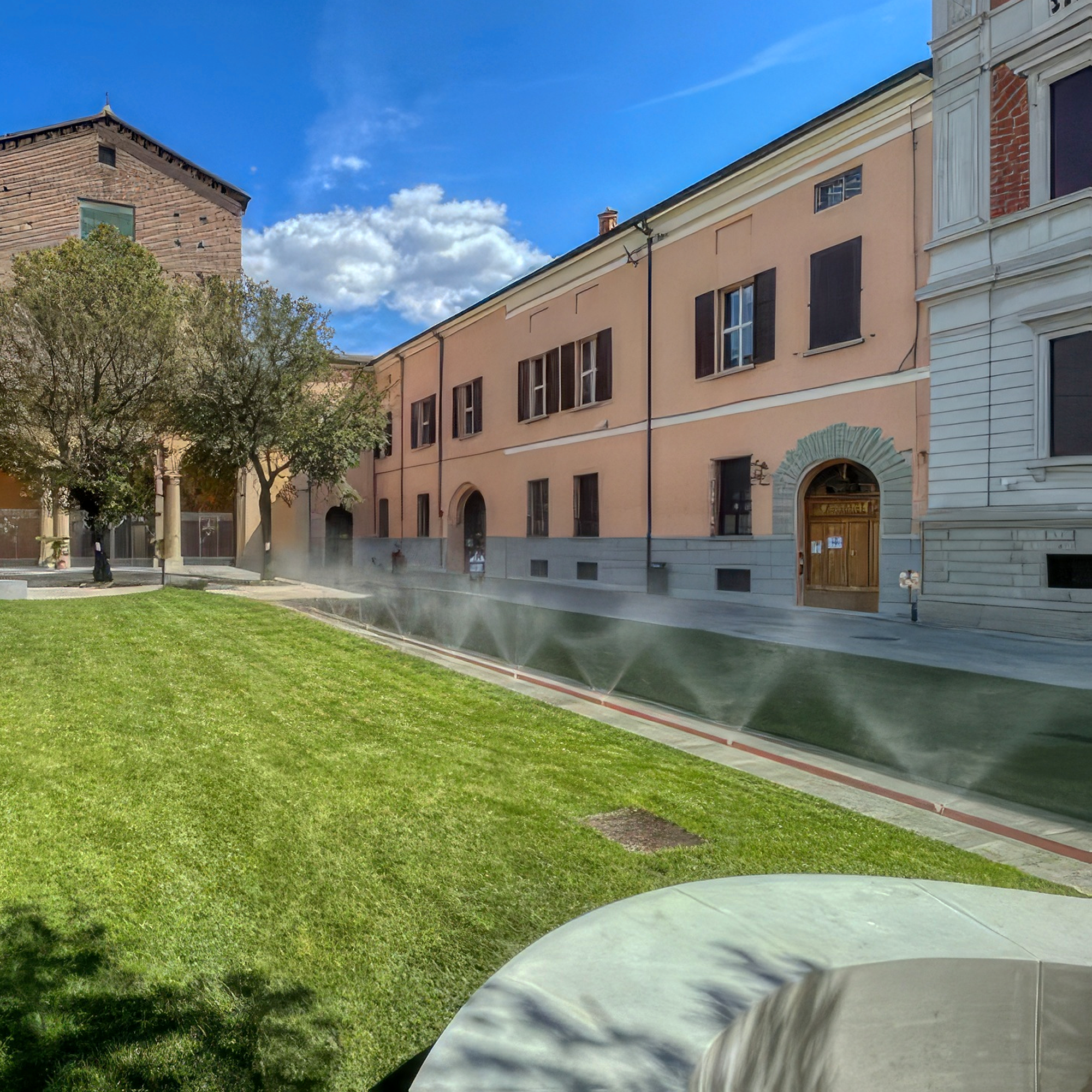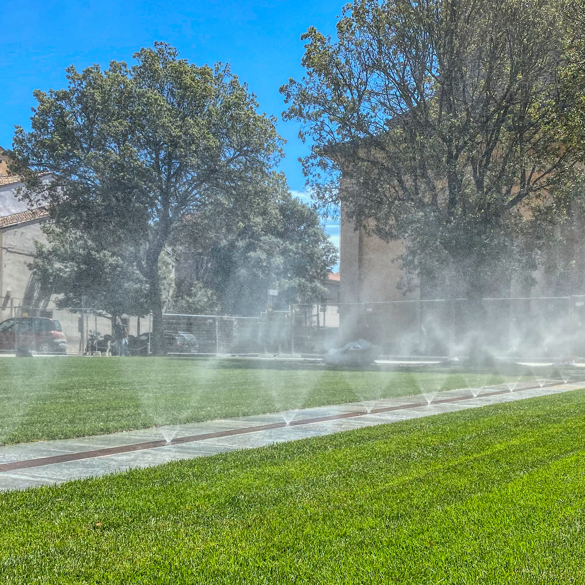 Perfect for squares, parks, gardens and public spaces, Fog Fountains not only create a scenographic effect, but also refresh, humidify, break down dust and odors, making the environment more comfortable on hot days.